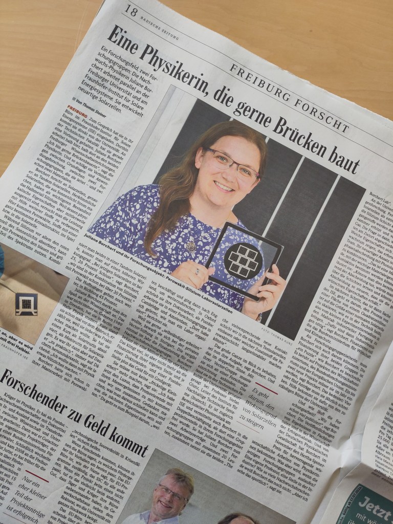 Perovskite based solar cells have in the last years become a dynamic research field which promises to change the way we will produce electricity in the future. In our research group we work on the deposition of perovskite thin films and their use in solar cells especially tandem solar cells. We are a team of 20 group members who come from a variety of countries, scientific disciplines ad career stages. For spring 2025 we are looking for students who are interested to join us for their master thesis research project. We work experimentally and it can take a while to learn the needed techniques, so we typically aim to have students in our group for at least 9 months. Depending on the requirements of your course this may be best done by combining HiWi time with the master thesis. Our group is based at the Fraunhofer Institute for Solar Energy Systems (Fraunhofer ISE) and the INATECH Institute of the technical faculty of University of Freiburg. We welcome Freiburg master students from a variety of courses including physics, sustainable systems engineering, chemistry, and other related subjects.